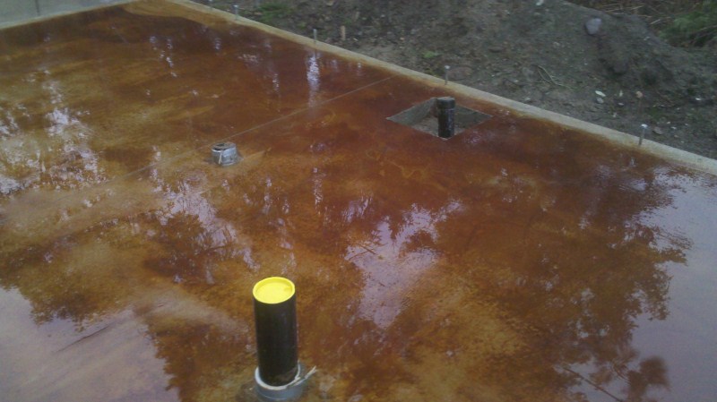 SCC completed the concrete on this new home for a couple moving to Port Townsend. Working directly for the homeowner, we were involved in this home at various phases from start to finish – beyond just concrete, we helped the out-of-town homeowners locate reputable sub-contractors and answered questions whenever possible. The scope of this project includes a foundation, garage slab, acid-stained, colored interior slab, and exterior flatwork. The interior slab is ‘earthen’ colored with the mahogany acid stain applied using a ‘swirled’ technique. It was a pleasure to help this couple create their dream retirement home!
